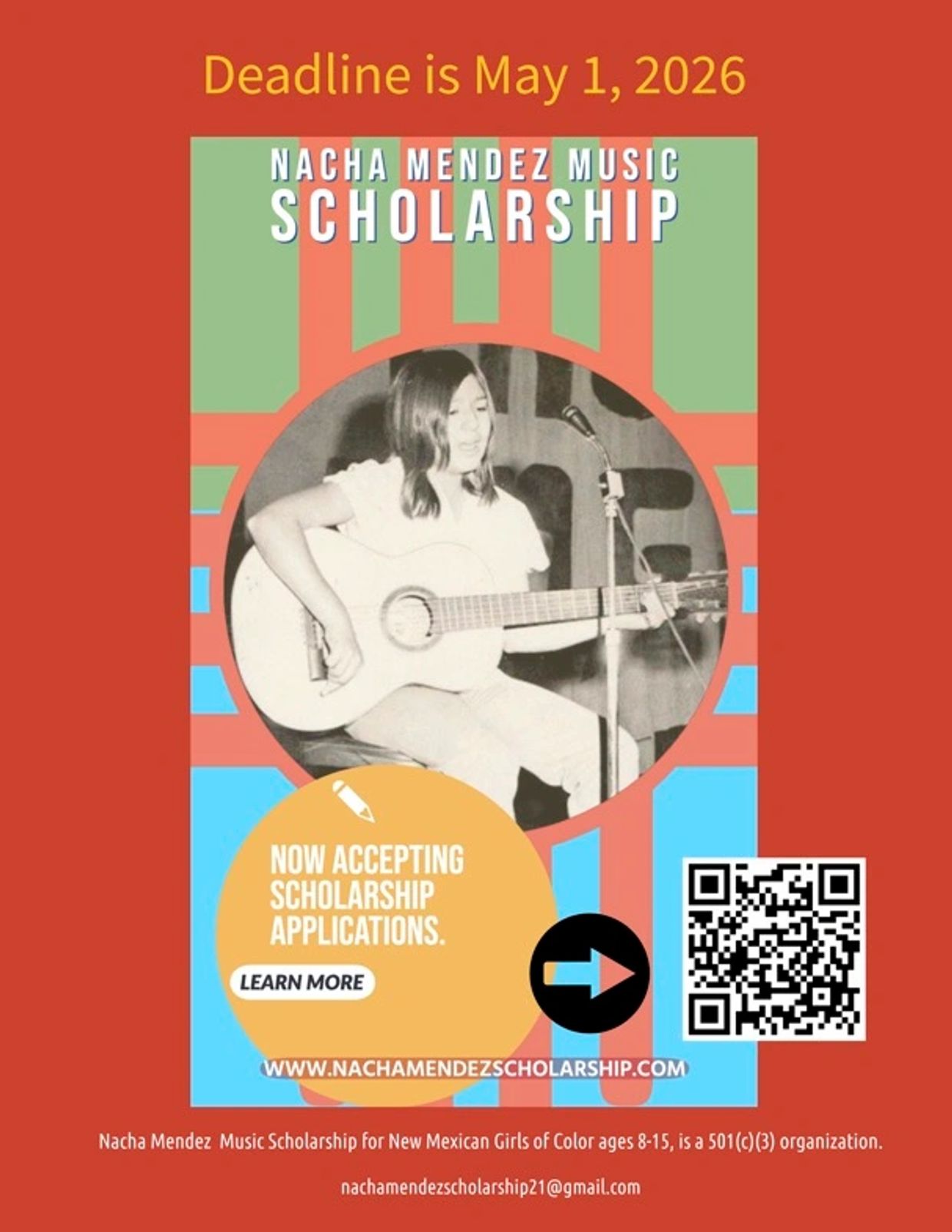 The Nacha Mendez Music Scholarship for New Mexican Girls of Color is a 501c3 nonprofit organization in accordance with the standards and regulations of the IRS. As such, donations to the scholarship fund are tax deductible.Our 501c3 non-profit foundation is entirely staffed by volunteers and funded by independent donors. Your tax deductible support is an invaluable vote of confidence that promotes access to musical opportunities for girls and gender expansive youth of color in New Mexico. Every contribution extends far beyond the tangible. Thank you for dreaming this dream with us.